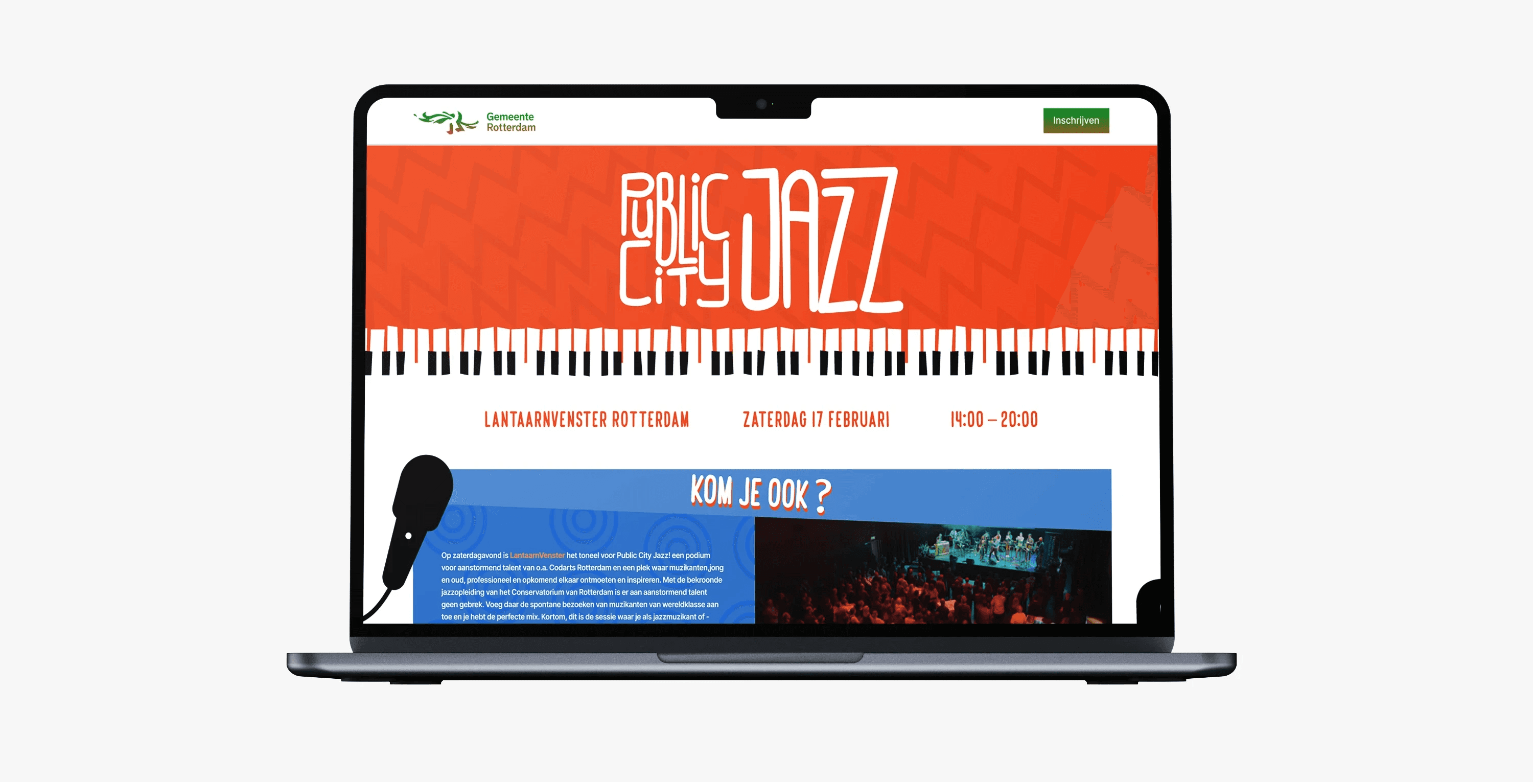 First, I thoroughly researched Rotterdam's corporate identity. This gave me a sense of what absolutely had to stay the same and where I had room to experiment. This way, you can still see that it belongs to Rotterdam, but that it's a special event and not a standard municipal website.